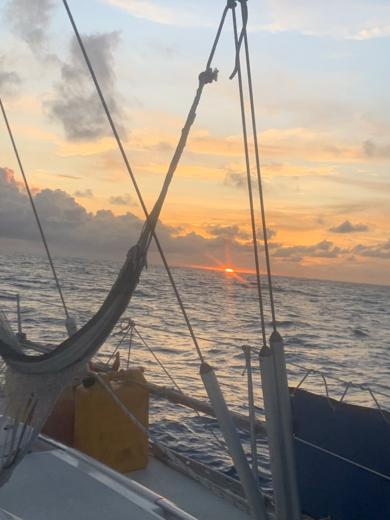 It is 5am. I take over my shift after a few blessed hours of sleep. The first things I notice upon being woken to the whisper of my name are sounds. Still sailing? Check. Autopilot working? Check. No water ingress or taps running? Check. The engine throttle in reverse to eliminate dragging from the folding prop? Check. Kids sleeping? It’s quiet – so that’s a check too. Any unusual sounds? None. Deep breath.